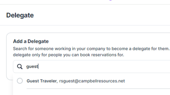 Once a guest profile is set up, users can delegate themselves to book for the guest traveler: